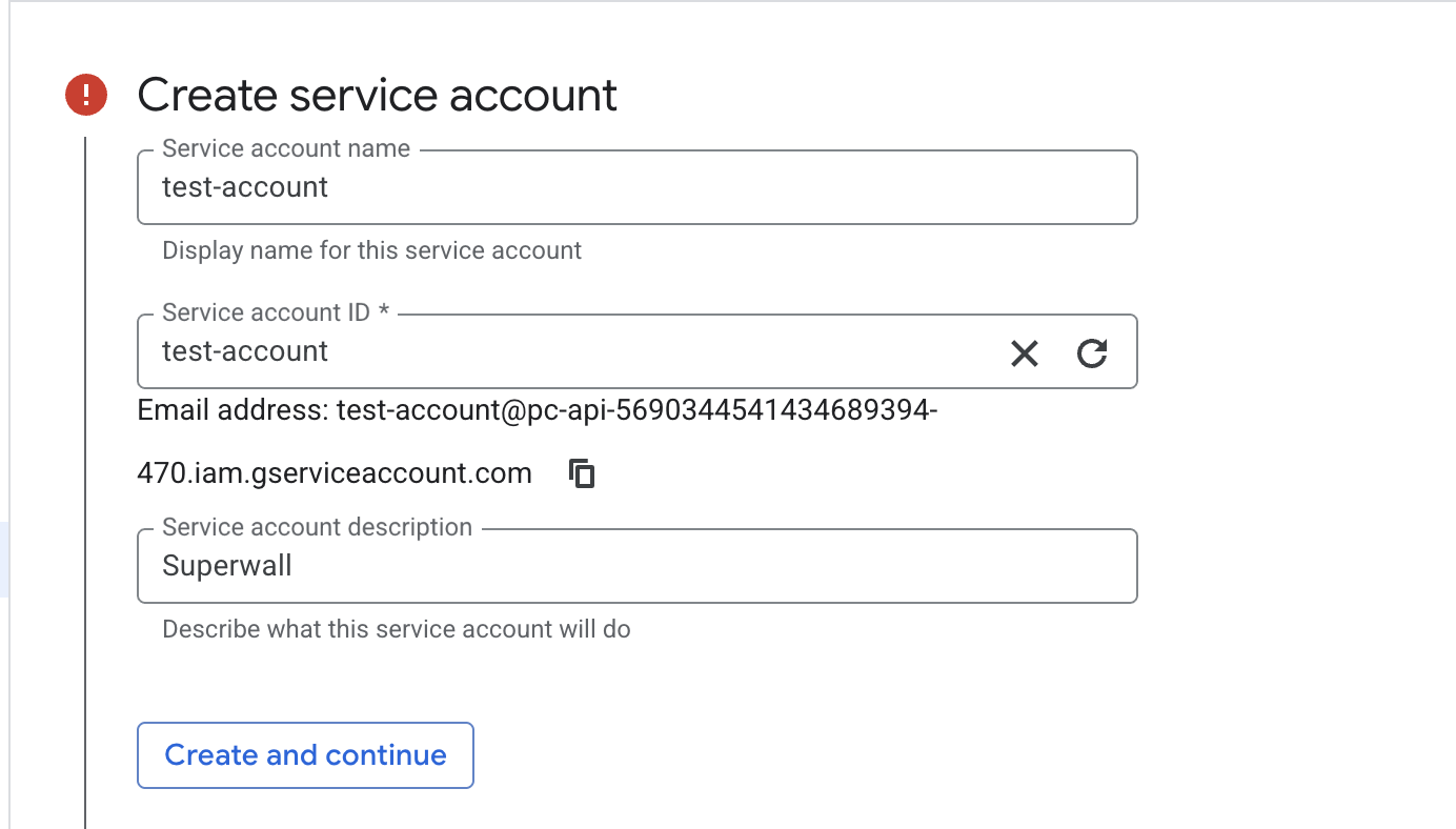 1. Create service account You can specify anything here.